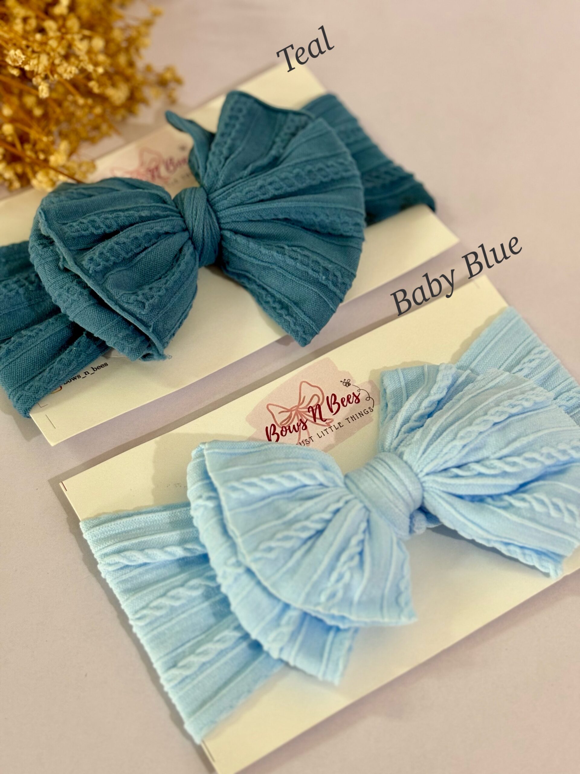Designed for newborns to toddlers, this headband is crafted from soft and stretchy cable knit fabric, ensuring a comfortable fit as they grow. Add a touch of sweetness to their ensemble with this adorable accessory.