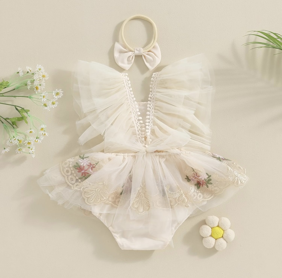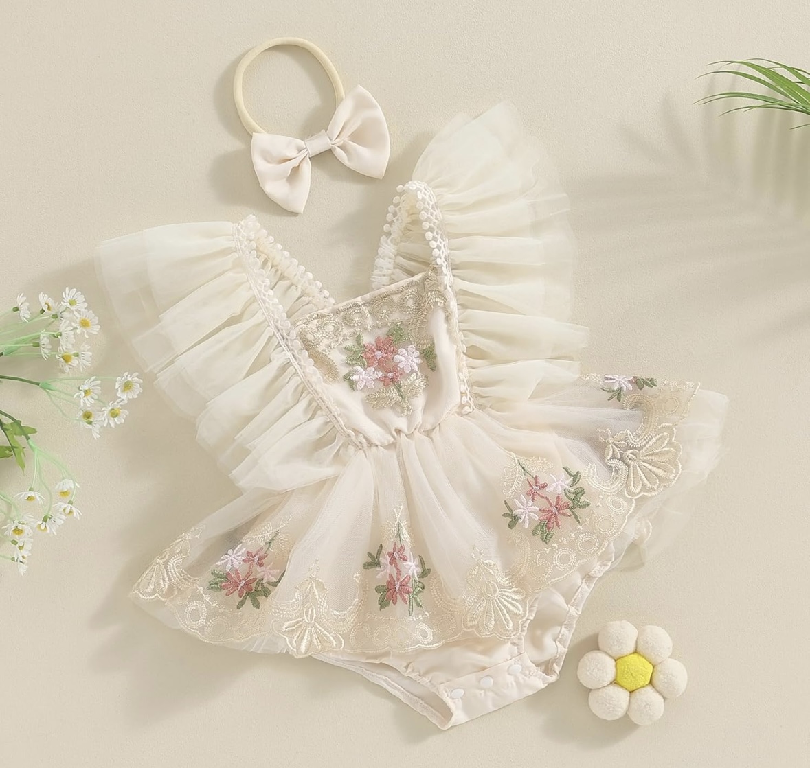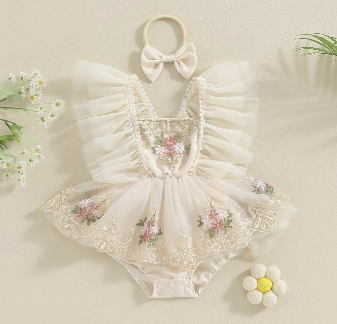 The Celine Romper brings a touch of timeless charm with its soft tulle layers and delicate floral embroidery. Designed to make your little one look effortlessly elegant while feeling comfy all day long.